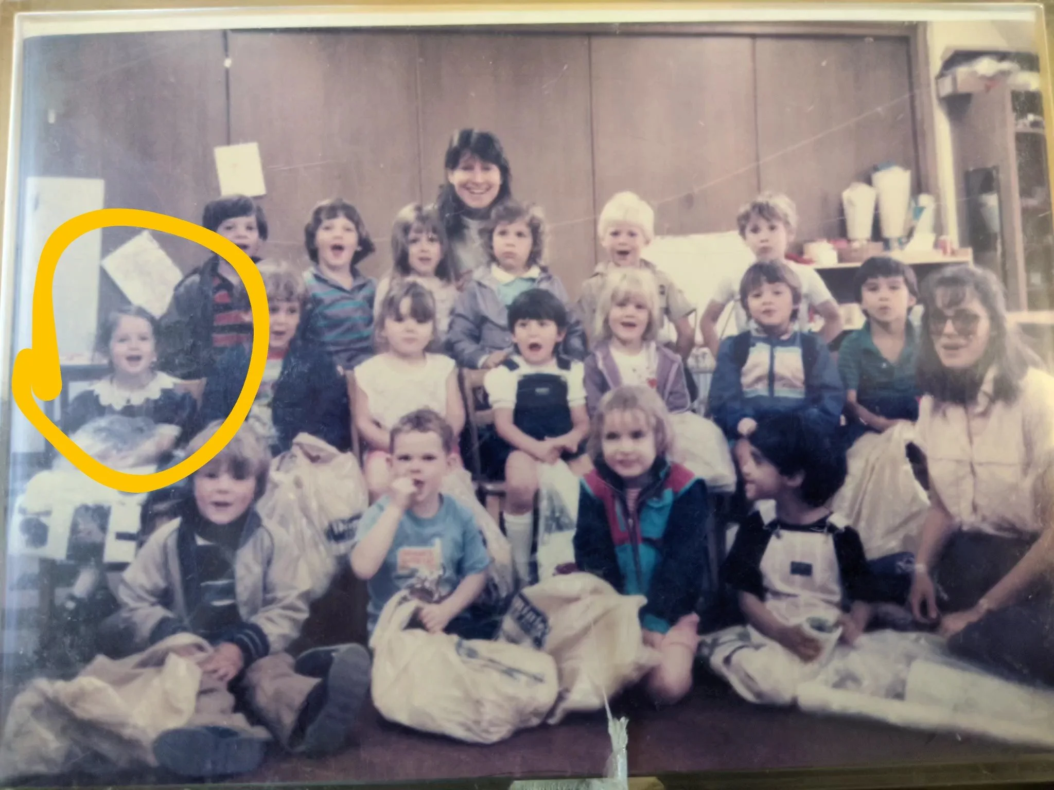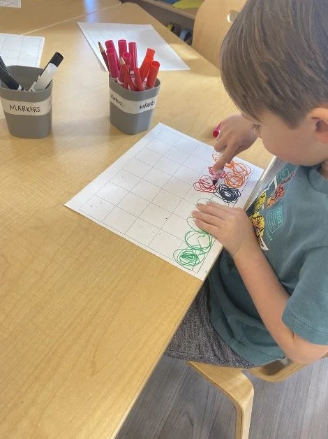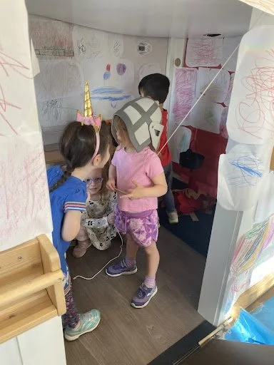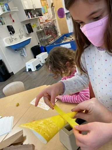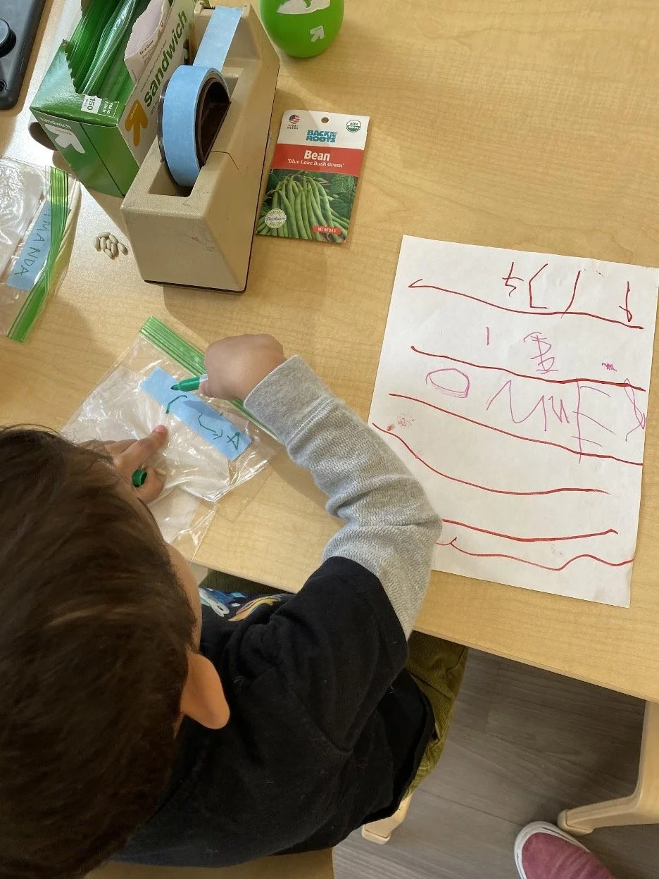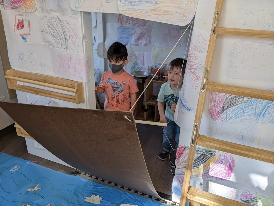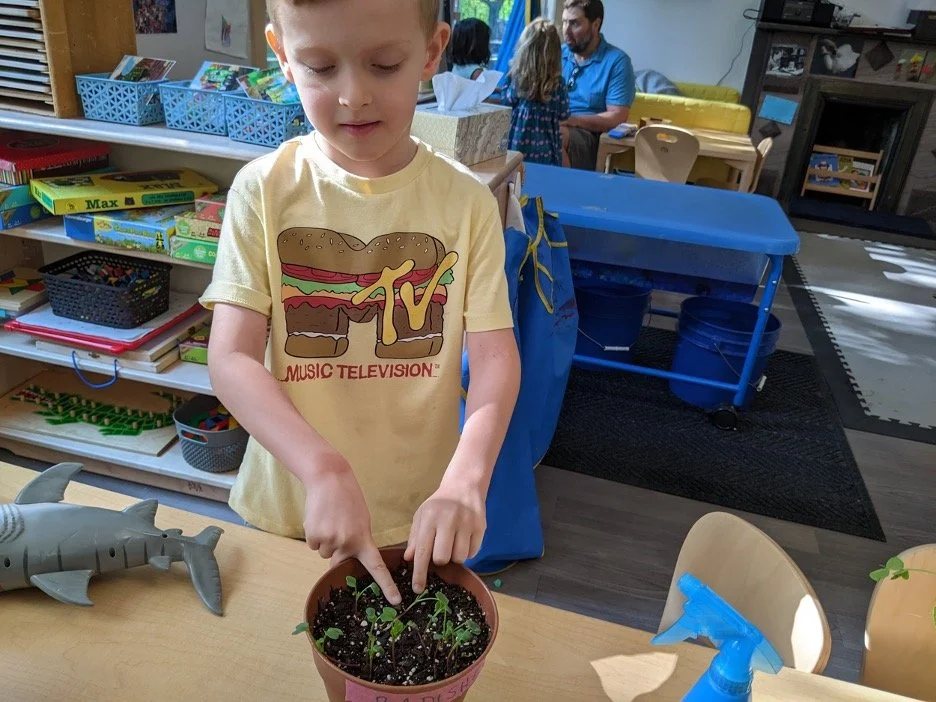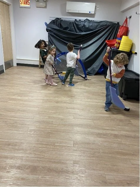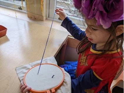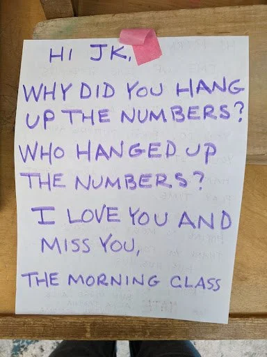 When there are days that you decide to accompany a reluctant child into the room, don't be surprised if they initially regard us with wary or even hostile looks, we may be perceived as interlopers at that moment. Just continue and take them through the motions of hanging up their coat. You can point out their picture on the name card and their cubby, both designations of their own space. This can create a concrete transitional moment from home to school.