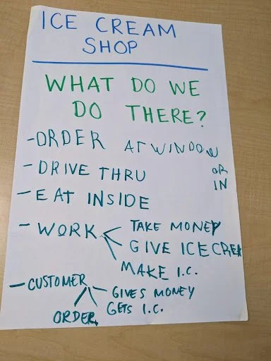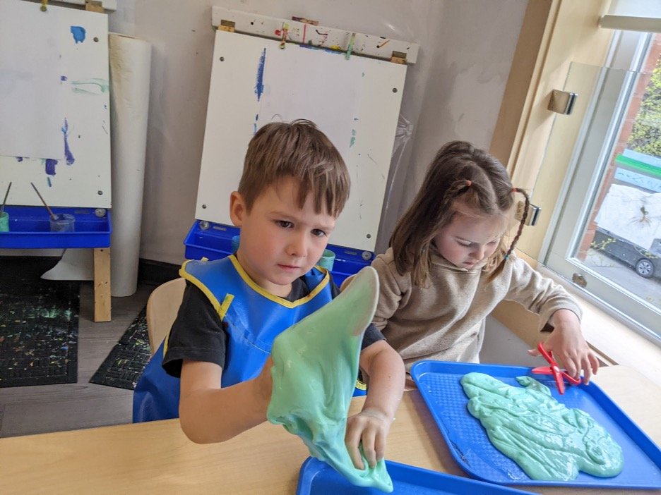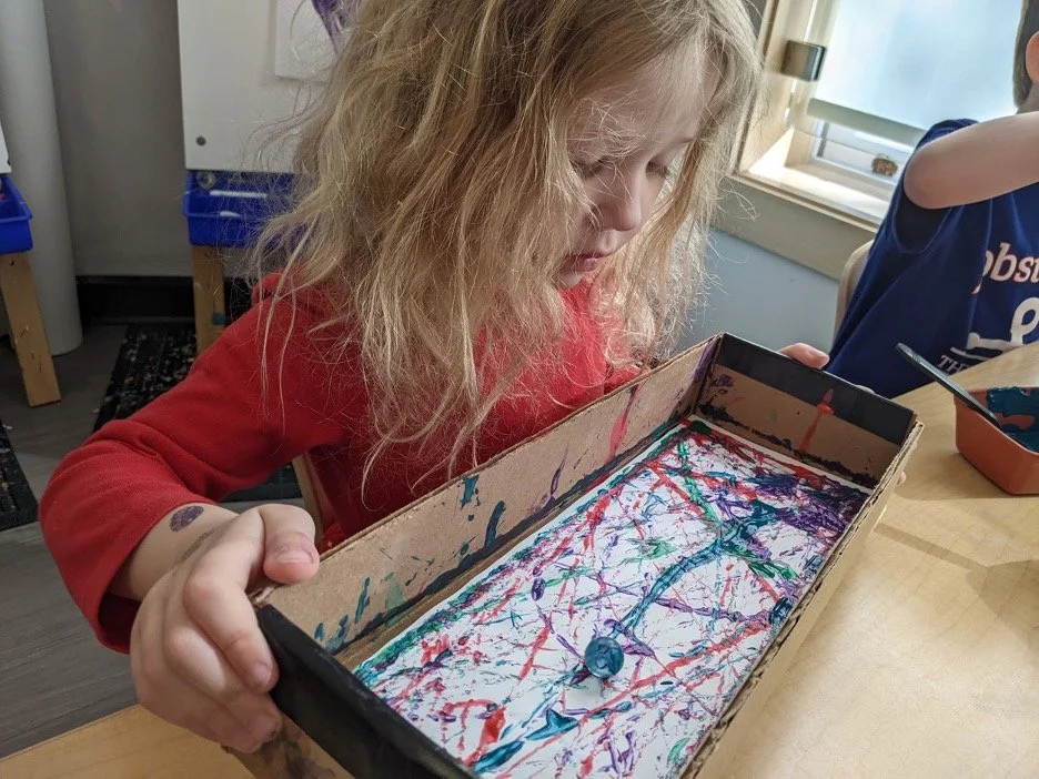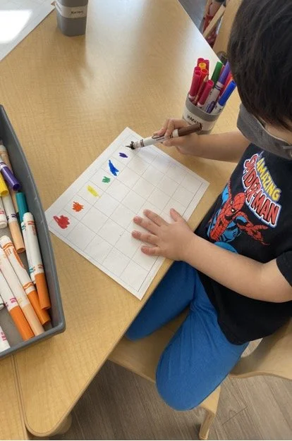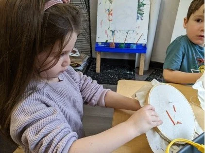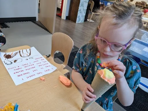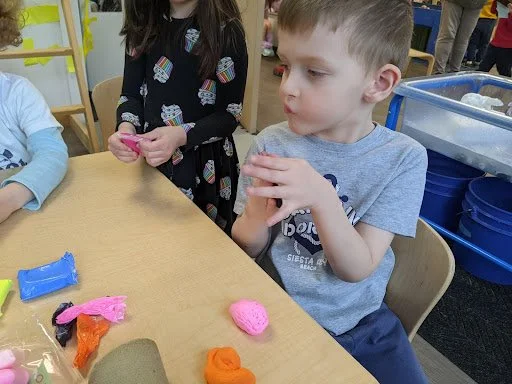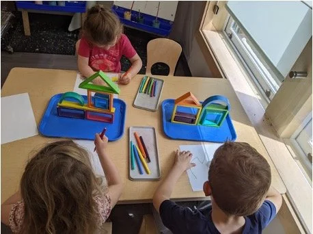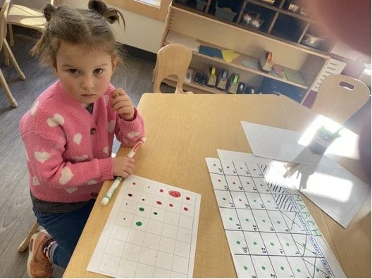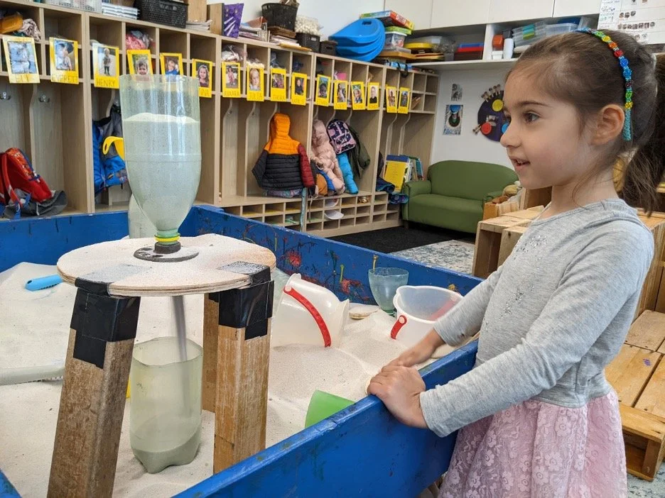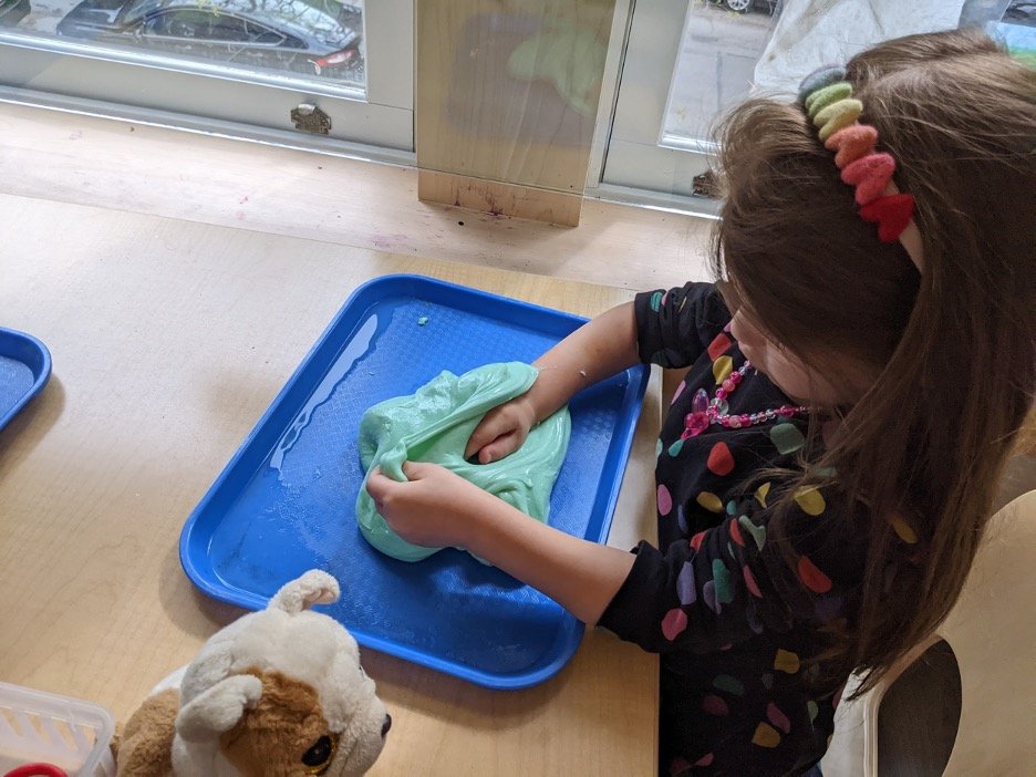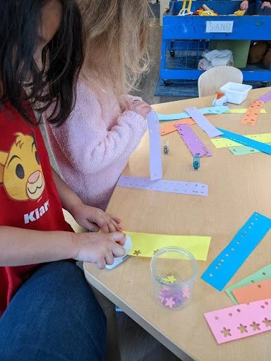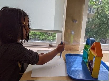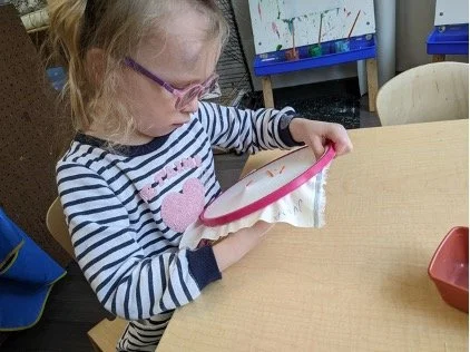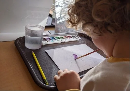 When there are days that you decide to accompany a reluctant child into the room, don't be surprised if they initially regard us with wary or even hostile looks, we may be perceived as interlopers at that moment. Just continue and take them through the motions of hanging up their coat. You can point out their picture on the name card and their cubby, both designations of their own space. This can create a concrete transitional moment from home to school.