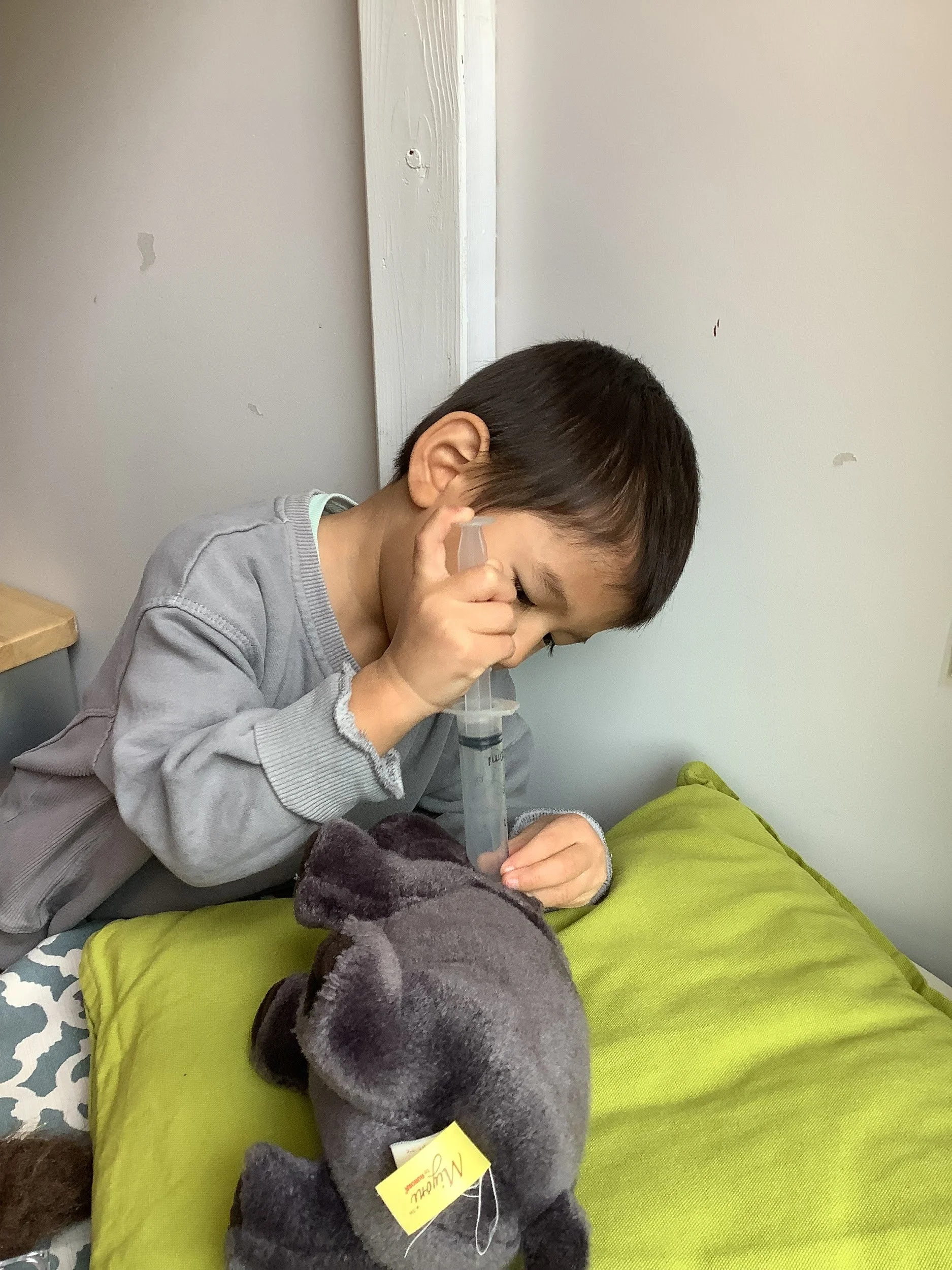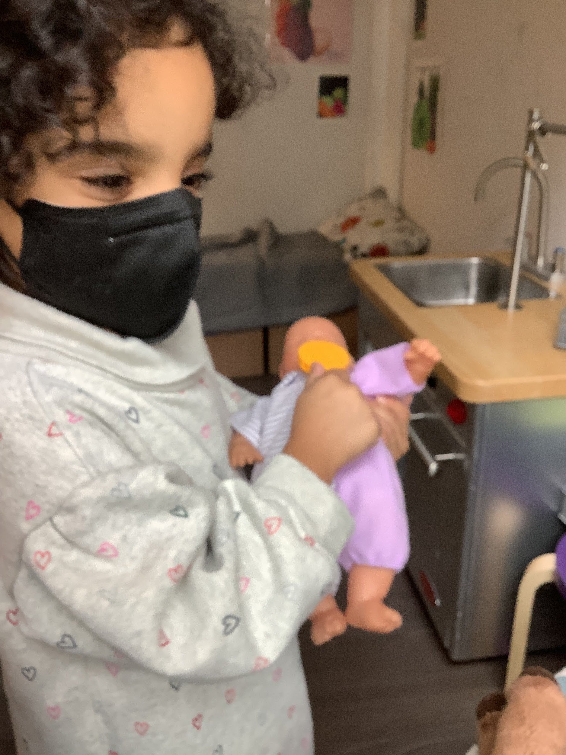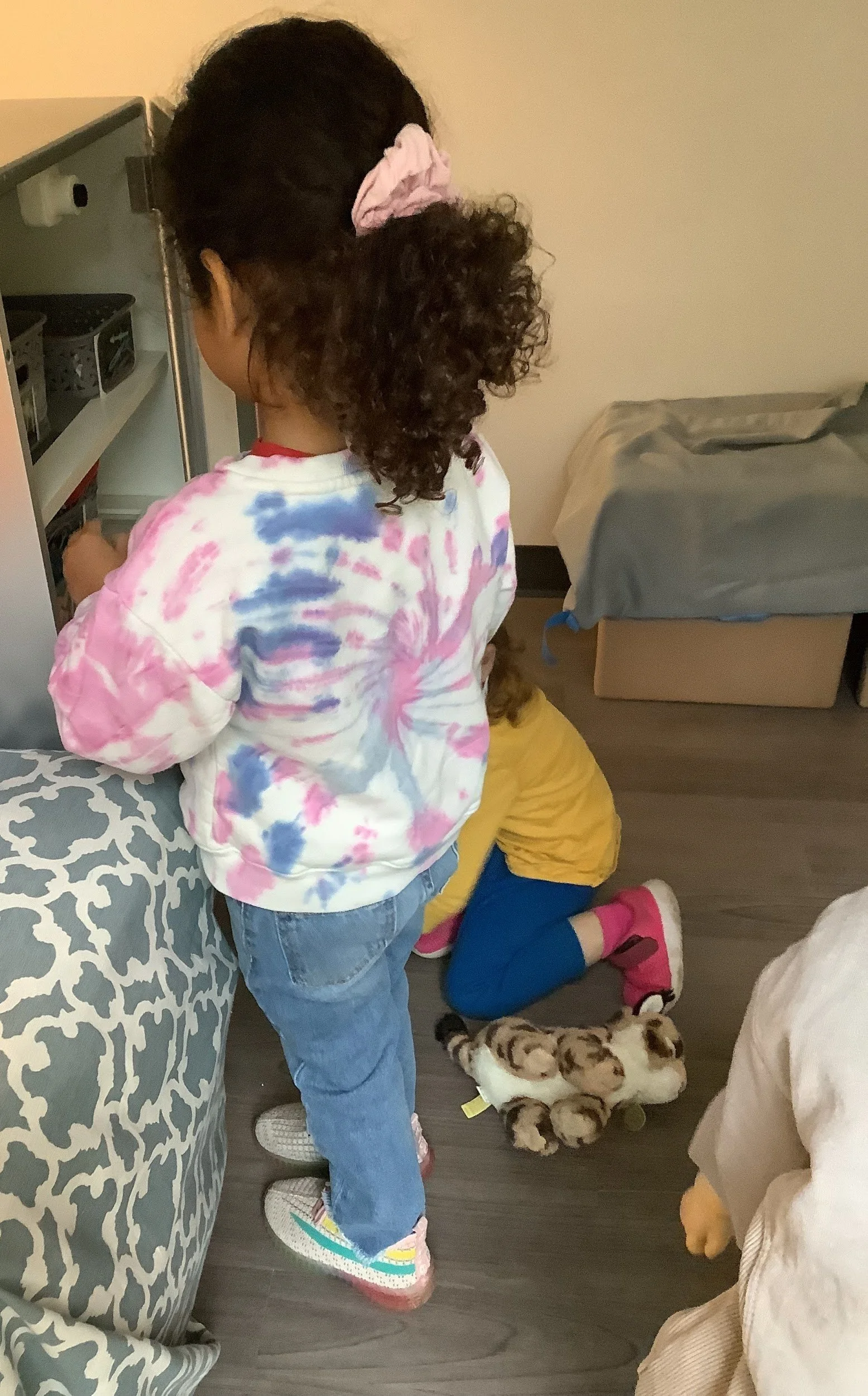We also know that singing together is a great way to play with language, rhythm and rhymes, numbers, sequencing, counting and counting down. Songs can introduce a variety of concepts, and offer a new way to think about things. Singing songs in different ways, or adapting songs, is a nice way to suggest that we have the agency to have different ideas, and that there is no one way to do something. Fingerplays are a good way to help kids isolate finger movements and build flexibility and strength in their fingers, and action songs can get kids moving their bodies. Sometimes we just sing something we might otherwise say, in an effort to capture kids’ attention and make a playful connection.