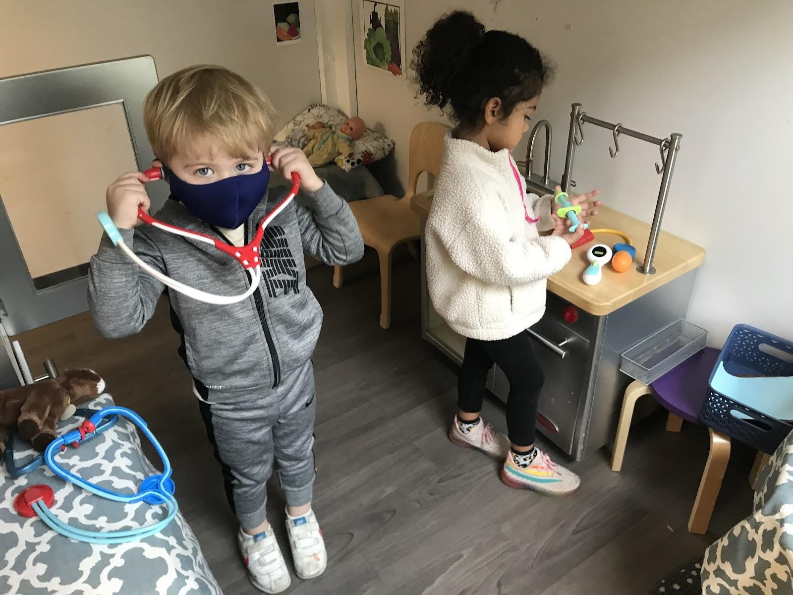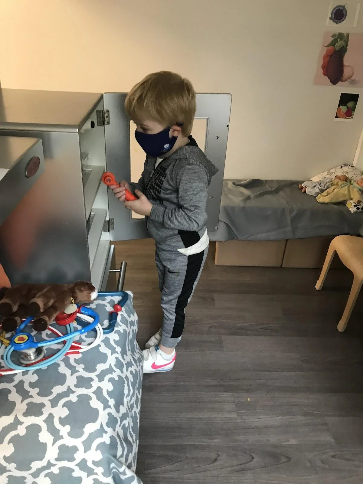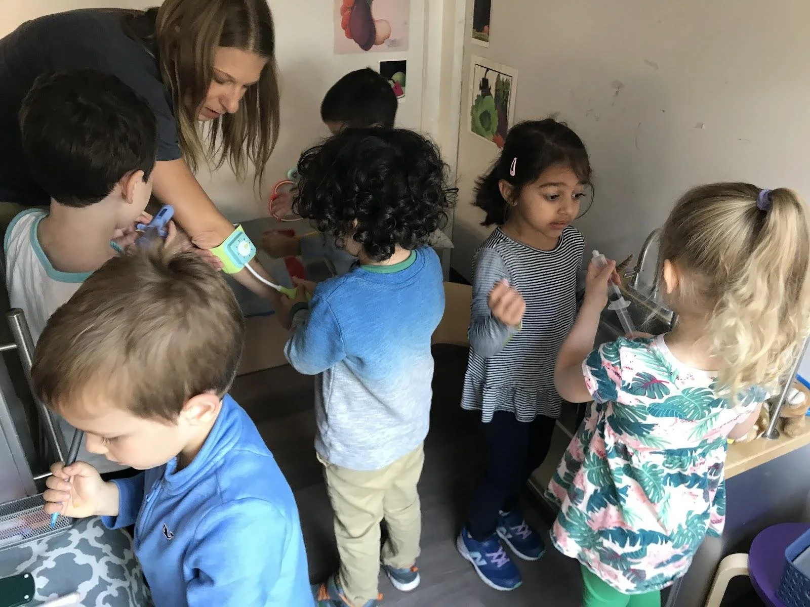 We also know that singing together is a great way to play with language, rhythm and rhymes, numbers, sequencing, counting and counting down. Songs can introduce a variety of concepts, and offer a new way to think about things. Singing songs in different ways, or adapting songs, is a nice way to suggest that we have the agency to have different ideas, and that there is no one way to do something. Fingerplays are a good way to help kids isolate finger movements and build flexibility and strength in their fingers, and action songs can get kids moving their bodies. Sometimes we just sing something we might otherwise say, in an effort to capture kids’ attention and make a playful connection.