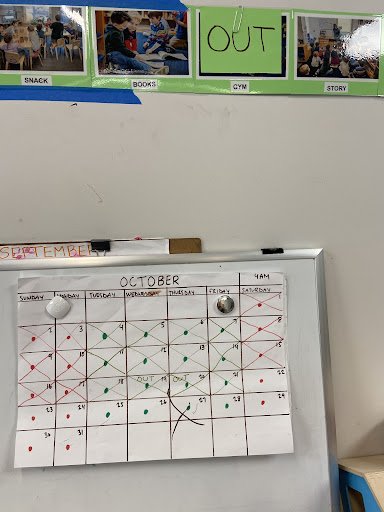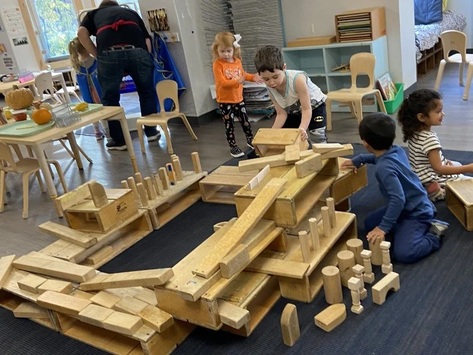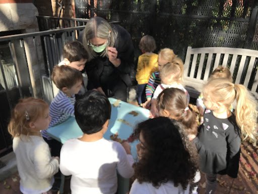 Throughout the year, singing songs and doing fingerplays can serve many purposes. Of course, there is the fun of singing, and singing together. Most children respond to music, and come to school already knowing some songs, so we include old familiars like Twinkle Star to offer a sense of connection from home to school. We want to foster the joy of singing, and to encourage the sense of community that can come from singing with a group.