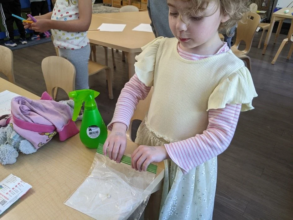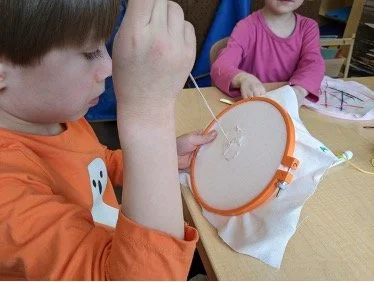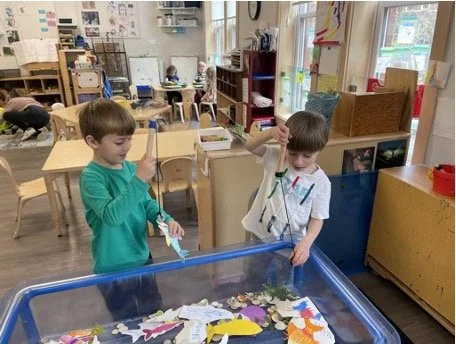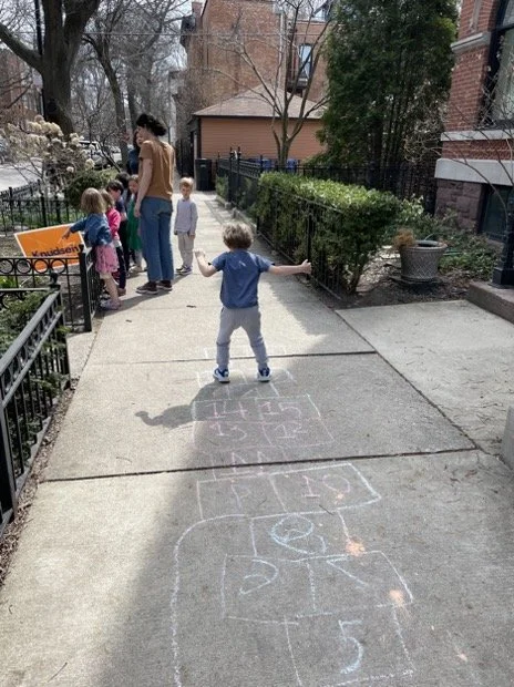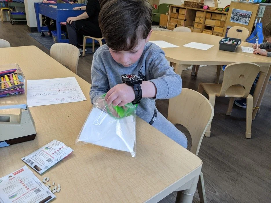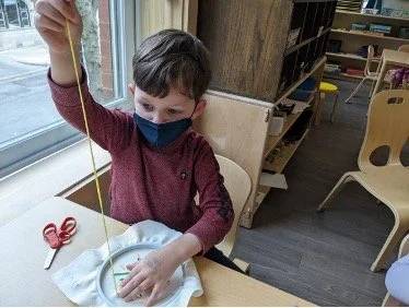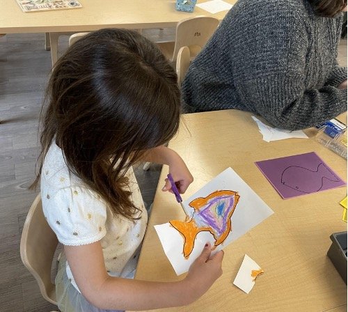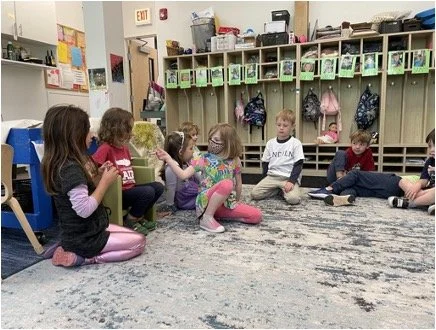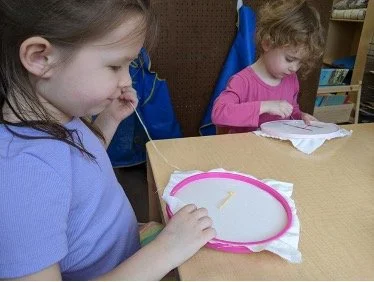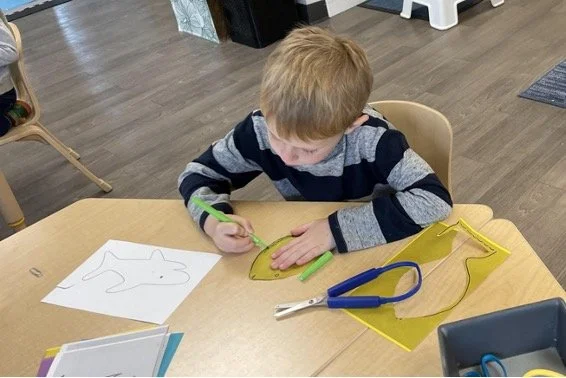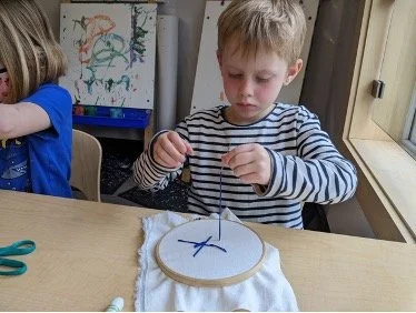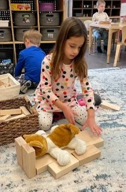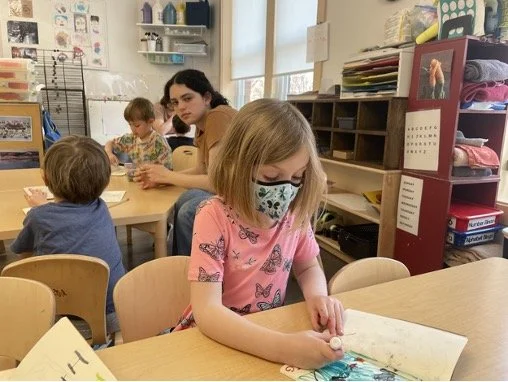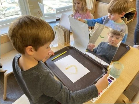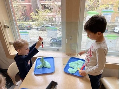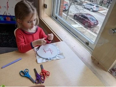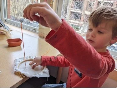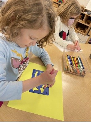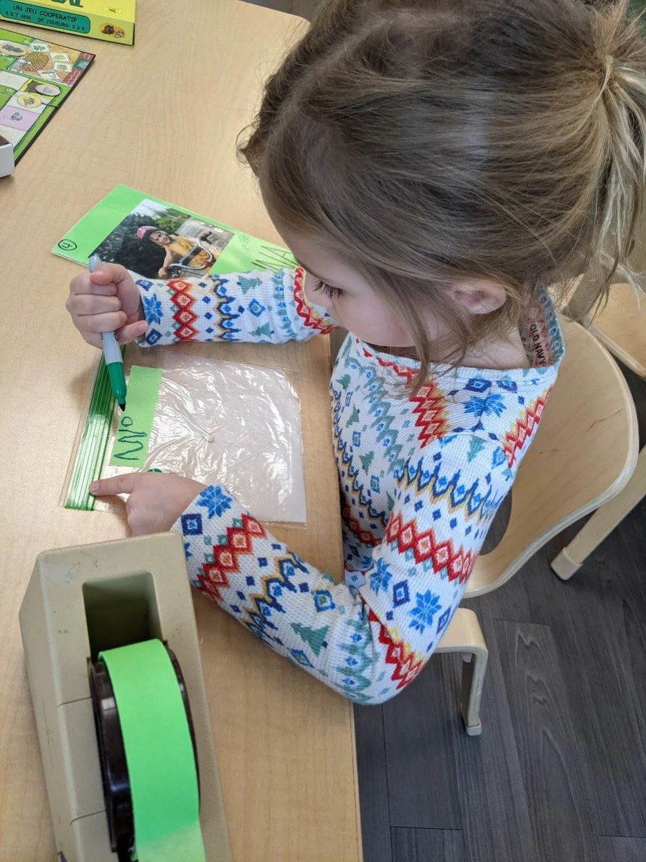 When there are days that you decide to accompany a reluctant child into the room, don't be surprised if they initially regard us with wary or even hostile looks, we may be perceived as interlopers at that moment. Just continue and take them through the motions of hanging up their coat. You can point out their picture on the name card and their cubby, both designations of their own space. This can create a concrete transitional moment from home to school.