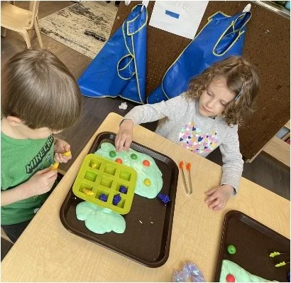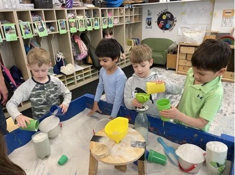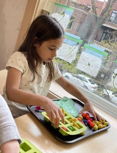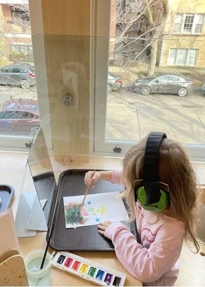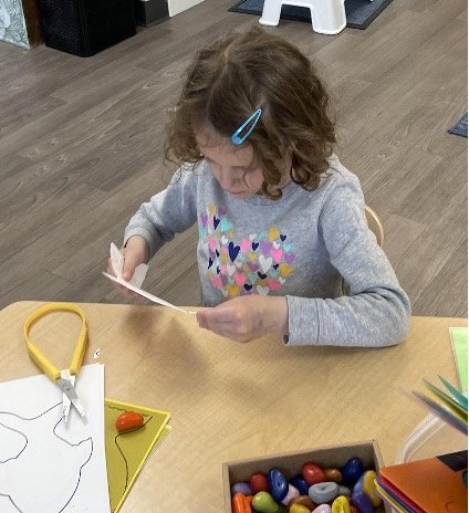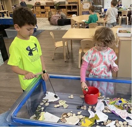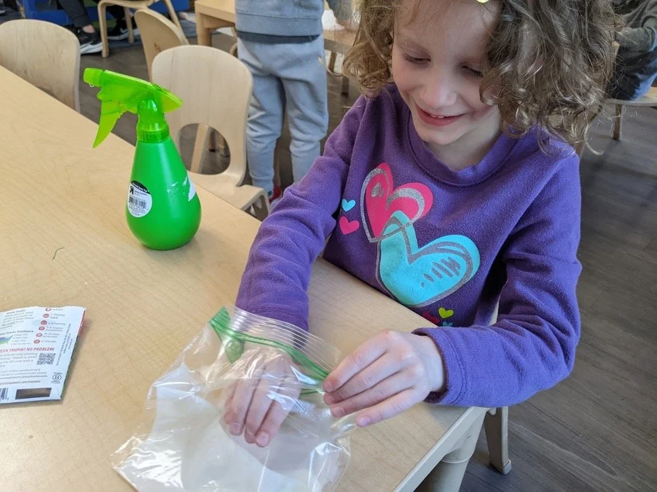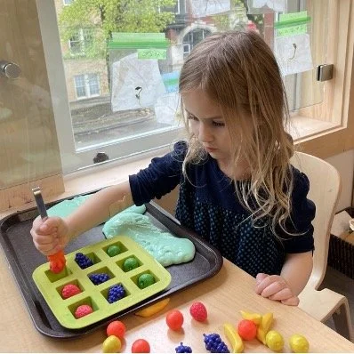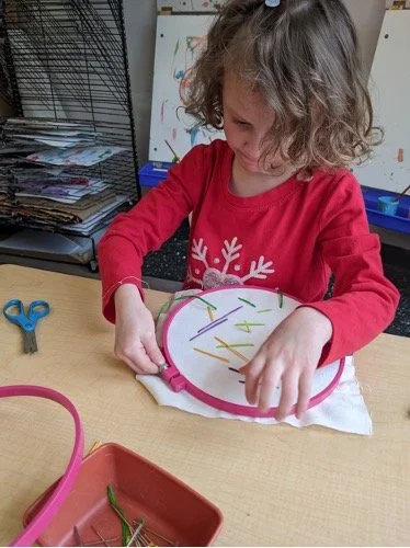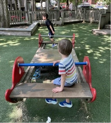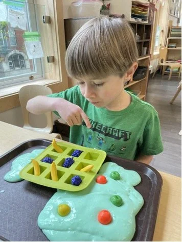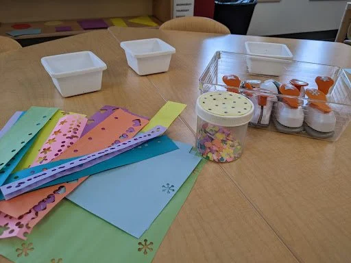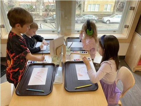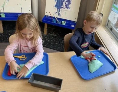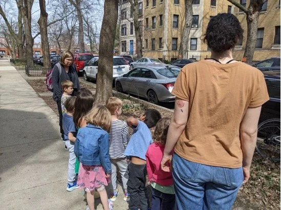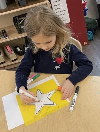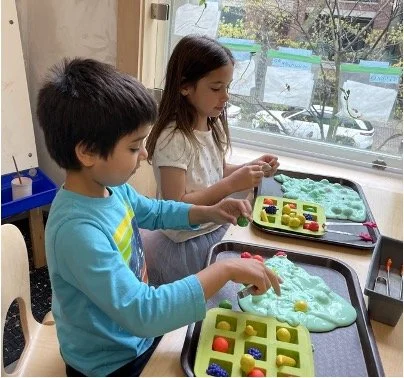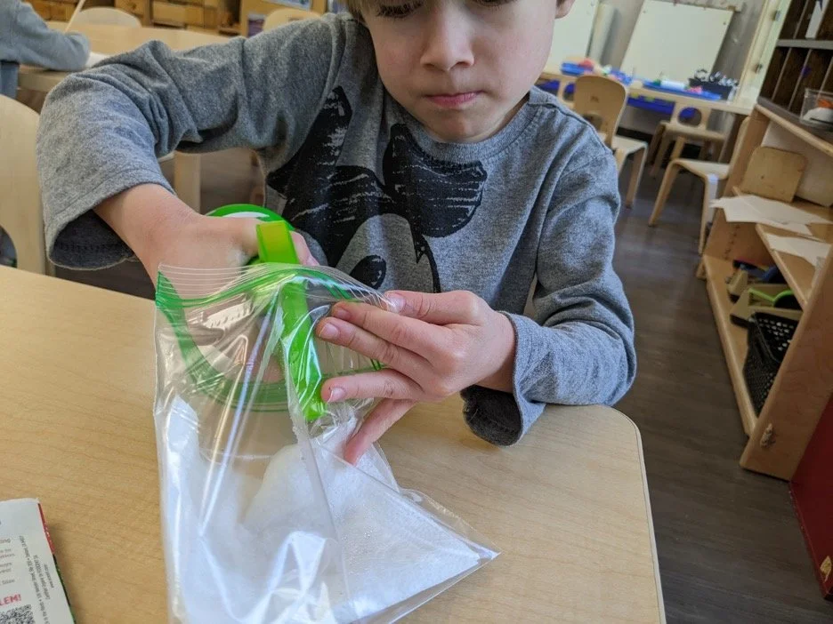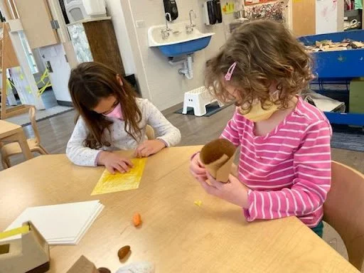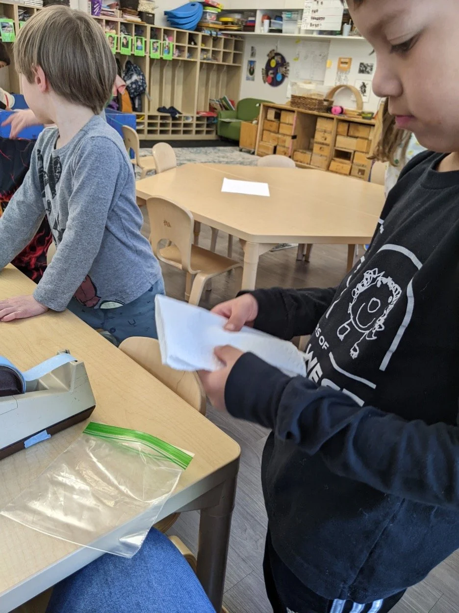 When there are days that you decide to accompany a reluctant child into the room, don't be surprised if they initially regard us with wary or even hostile looks, we may be perceived as interlopers at that moment. Just continue and take them through the motions of hanging up their coat. You can point out their picture on the name card and their cubby, both designations of their own space. This can create a concrete transitional moment from home to school.