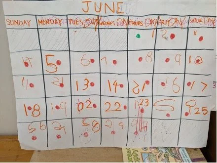 So you might think, here we go back to scratch and the beginning of the year. We need to start separation again. Not really. Remember when we described separation as a lifelong process? Well here is an example of a mini episode in that process. In the fall your kids knew nothing about the space, the adults, the kids, the routine of the day, the expectations. That is no longer the case at all. Now they have laid the groundwork for constructing the experience. On varying levels they now move independently in that space, trust and engage with the adults, play, negotiate and disagree with the other kids, remind each other of the routine of the day, and anticipate the expectations. And we encourage you over the break, to reinforce and converse with kids about the school experience, the people, the activities and the times of day. Reassure them that school will be starting again soon and that it will be the same. For some, a condensed calendar format for the countdown until school starts can prove useful.