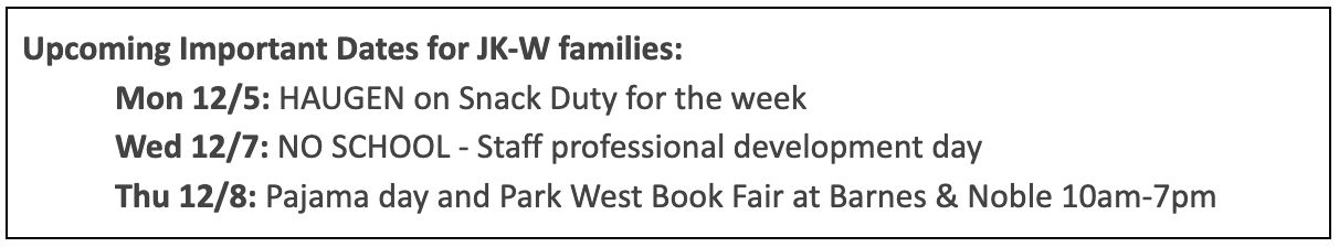 At our conferences many of you shared that your child is singing school songs at home, so we thought we’d provide lyrics to some, to help you sing along. We’re also including a link to a recording of David, a former Park West teacher, singing The Tree in the Valley.