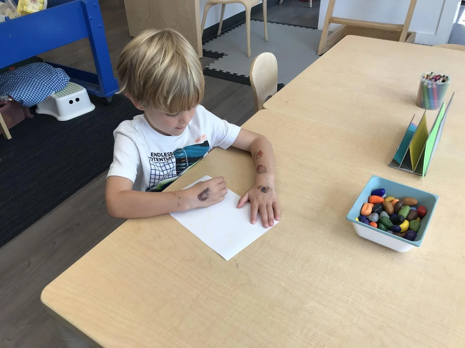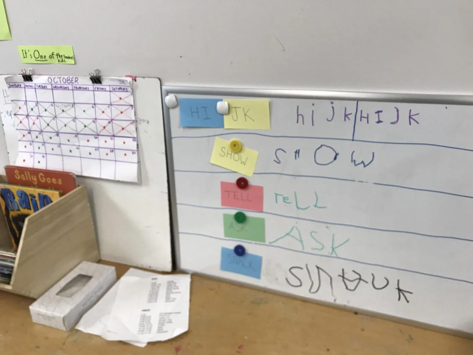 Throughout the year, singing songs and doing fingerplays can serve many purposes. Of course, there is the fun of singing, and singing together. Most children respond to music, and come to school already knowing some songs, so we include old familiars like Twinkle Star to offer a sense of connection from home to school. We want to foster the joy of singing, and to encourage the sense of community that can come from singing with a group.